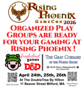 Sign up now at Rising Phoenix GameCon April 24-26 2026 @ Doubletree in Milford, MA
